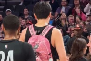 开拓者球迷嘉年华新秀杨瀚森和乐福背着书包学跳舞 队友鼓掌
