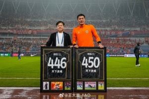 里程碑,36岁王大雷领取两件中国顶级联赛出场数纪念球衣